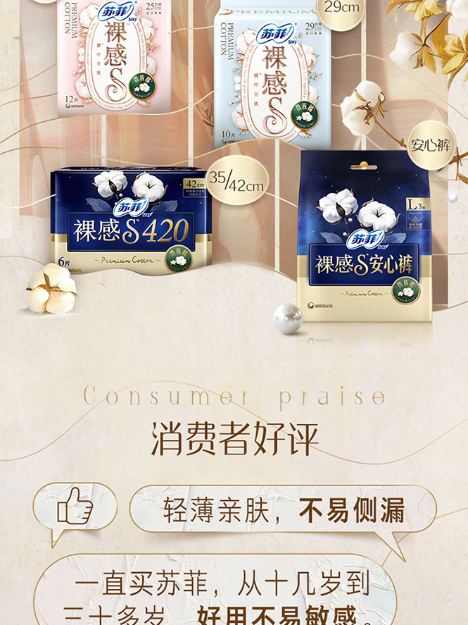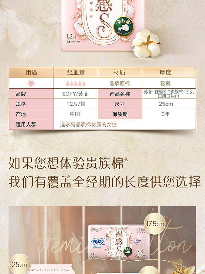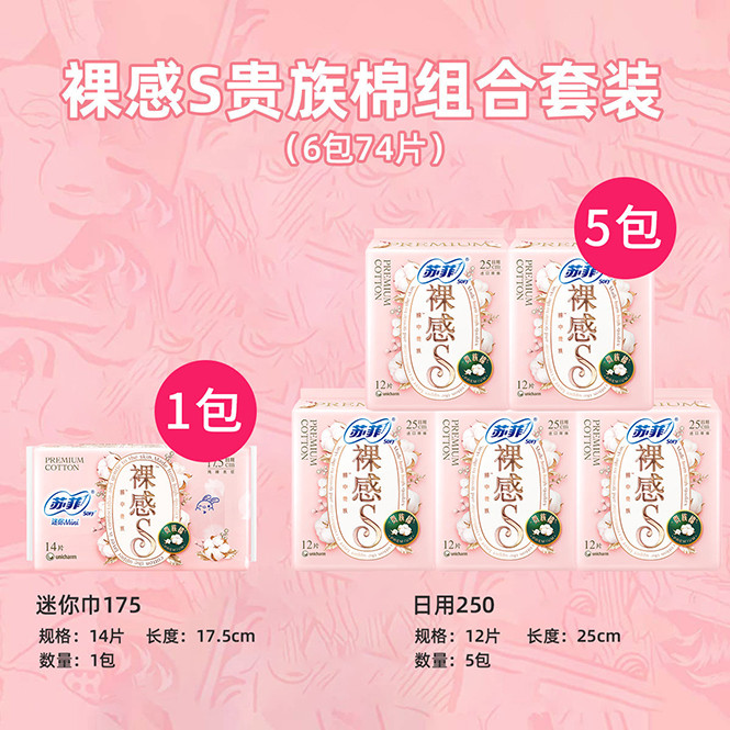 苏菲 【品牌直供】尤妮佳卫生巾裸感贵族棉套装71片/74片/86片 【售价】:¥52 下单链接: