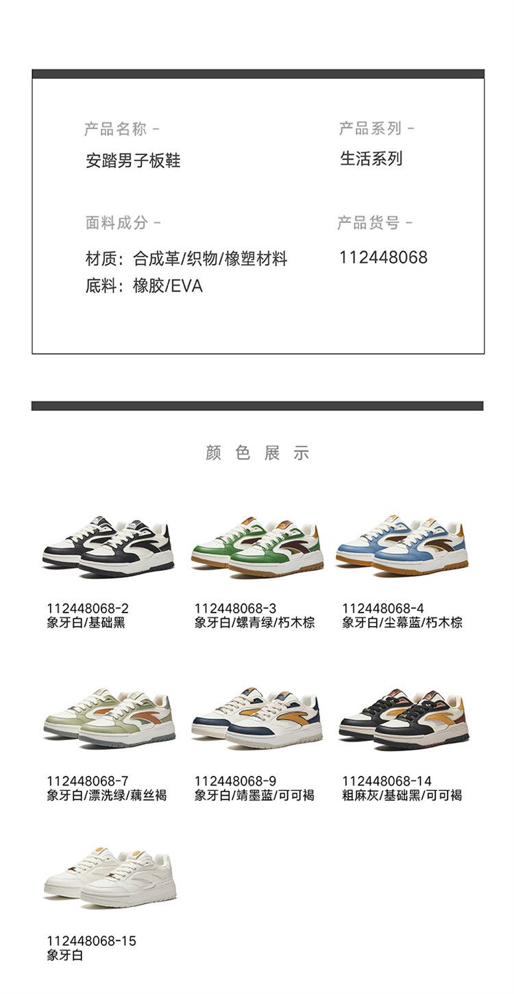 安踏 【982】男士板鞋经典潮流板鞋秋季舒适休闲鞋厚底增高时尚运动 【售价】:¥149 下单链接: