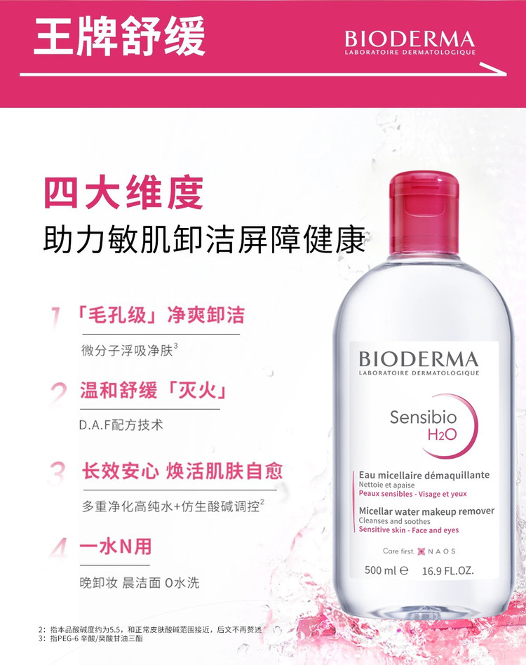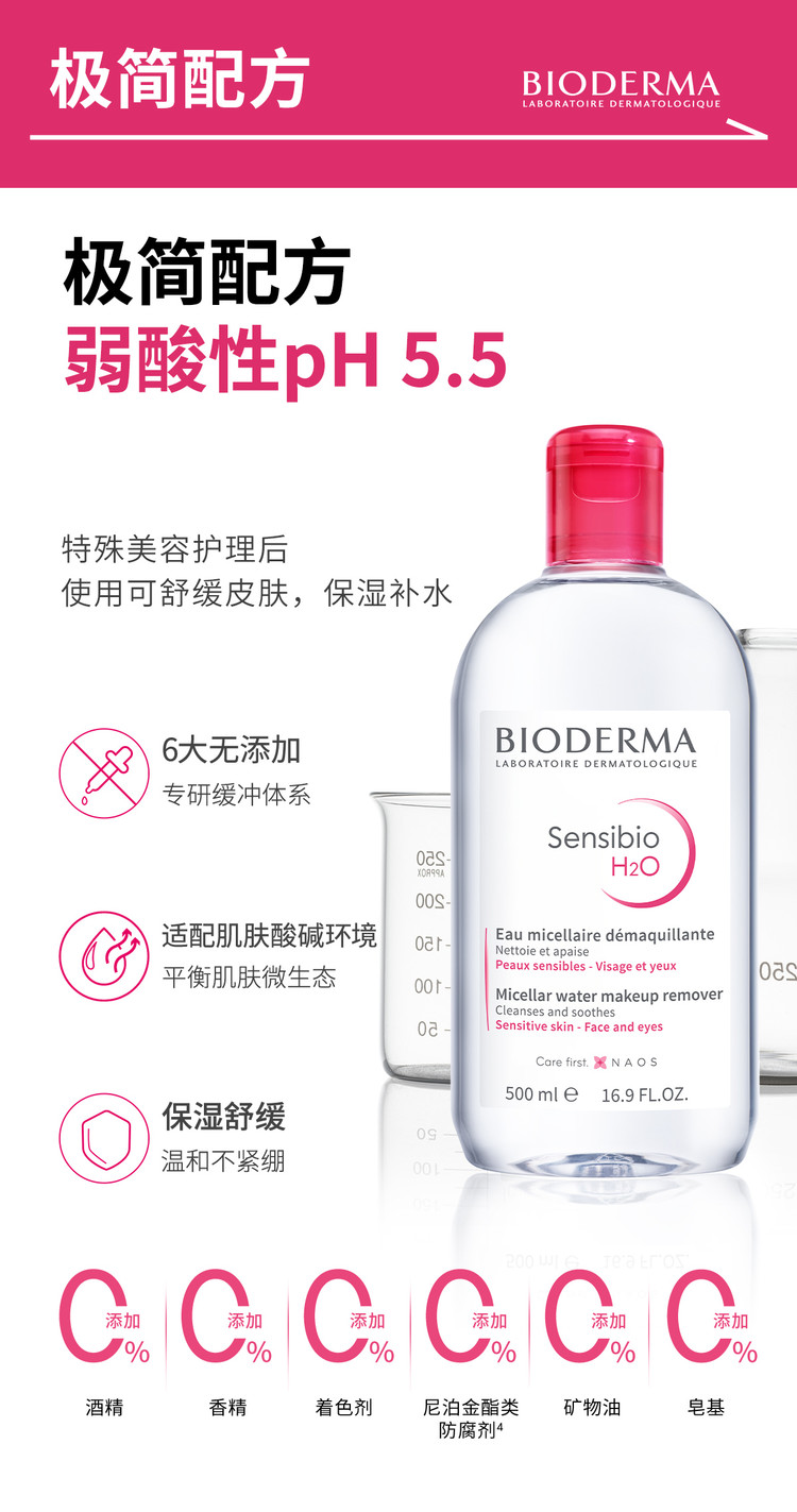 贝德玛BIODERMA 多效洁肤液500ml粉水绿水蓝水敏感肌油痘肌温和卸妆清洁补水 【售价】:¥65 下单链接: