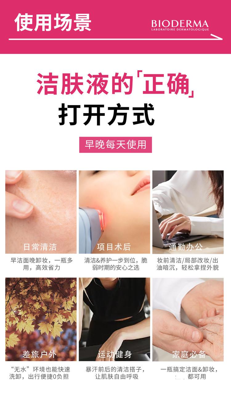 贝德玛BIODERMA 多效洁肤液500ml粉水绿水蓝水敏感肌油痘肌温和卸妆清洁补水